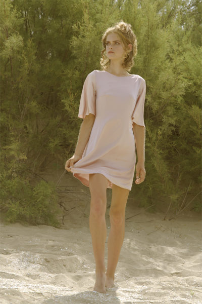 Short Light pink dress in Satin Silk , elegant, comfortable, soft feel, with dart.
